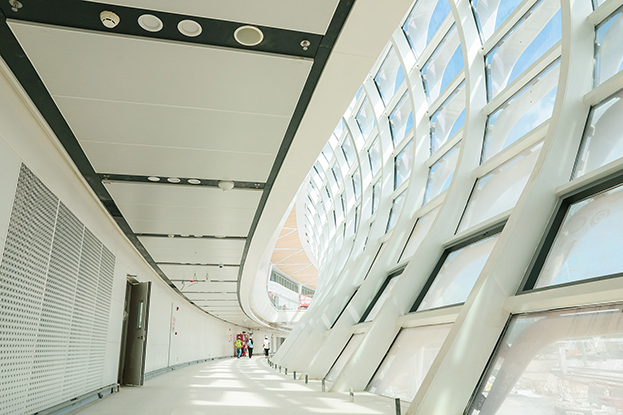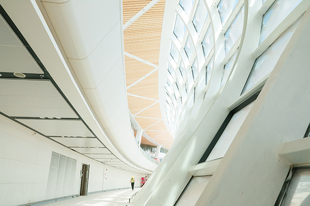 深圳機場衛(wèi)星廳建筑面積23萬多平方米,由中央、東南、東北、西南和西北五個指廊組成,分為地上四層、地下一層。作為唯一參與精裝修的民營企業(yè),中裝建設(shè)主要負(fù)責(zé)深圳機場衛(wèi)星廳2-3層西南、西北指廊,西雙子星廣場的精裝修工程。