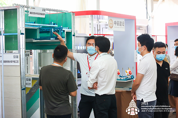 在專家主題演講之余,精品展會同時進行,公司展位吸引了來自全國各地的眾多領導、專家、行業大咖的長久駐足,嘉賓們對中裝建設在建筑工業化和裝配式建筑方面取得業績予以高度肯定,對中裝建設在裝配式領域研發、設計、構件生產、施工、培訓、咨詢、信息化建設等方面的工作表示贊賞。